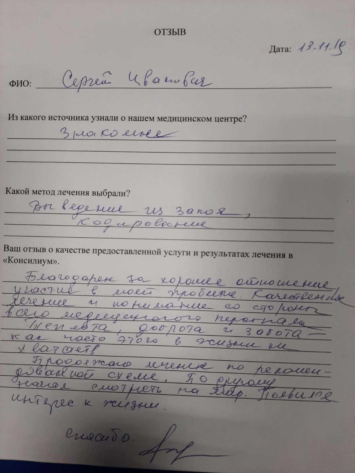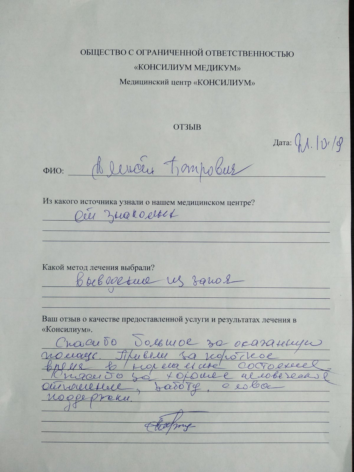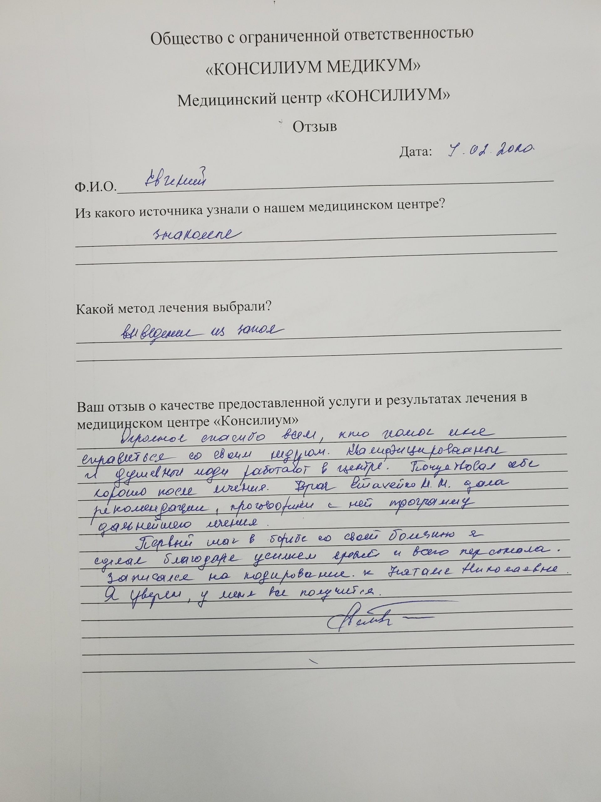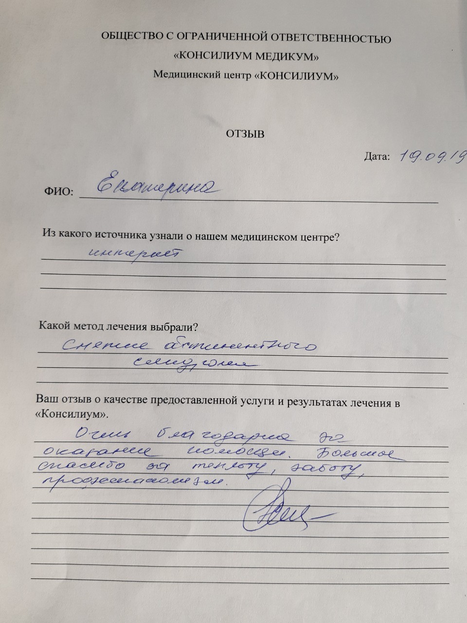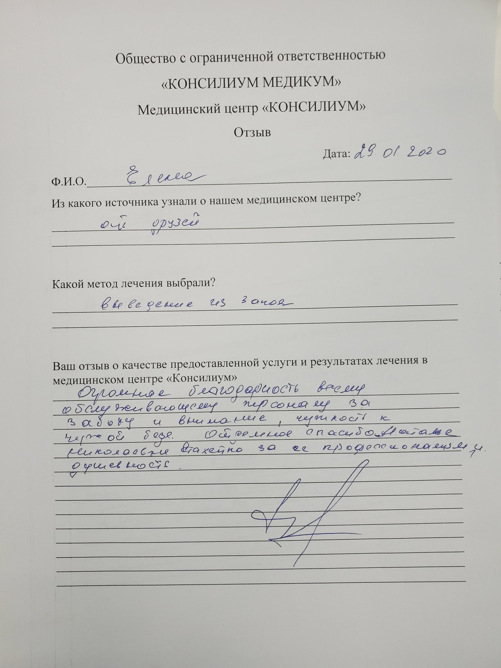 Отзывы наших клиентовВ данном разделе будут опубликованы отзывы клиентов медицинского центра «Консилиум».отзыв1отзыв2отзыв3Отзыв4IMG-9b93882ab9c174f17f3048b9a660385b-VIMG-7b0e262eb61aaf51d575271d98482f6a-V20200214_17401020200214_17401620200214_174021Обсуждение закрыто.